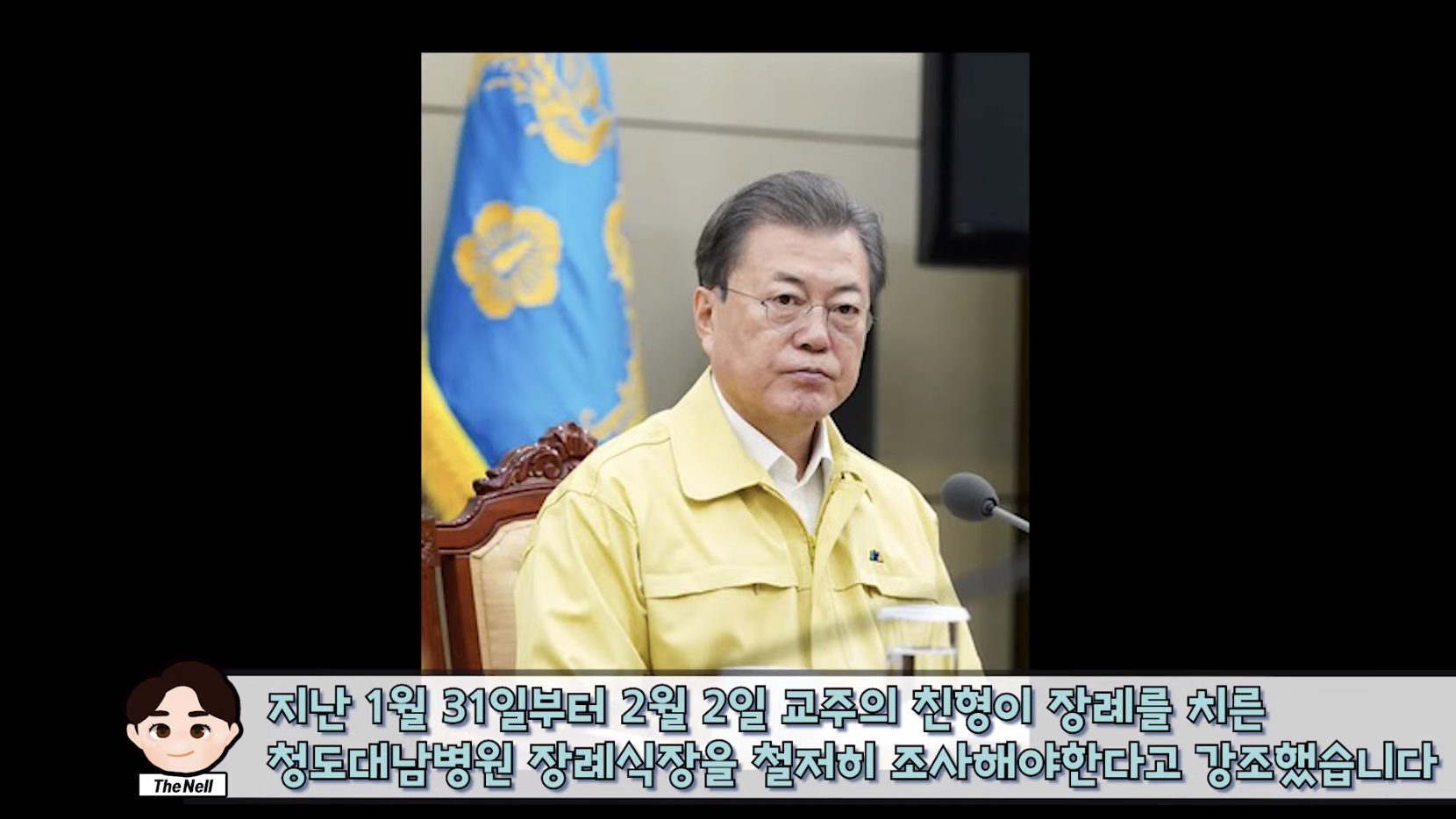 문재인 대통령도 하루만에 확진자가 급속히 확산하게한 신천지 대구교회와 1월31일부터 2월2일 교주의 친형이 장례를 치른 청도대남병원 장례식장을 철저히 조사해야한다고 강조했습니다.