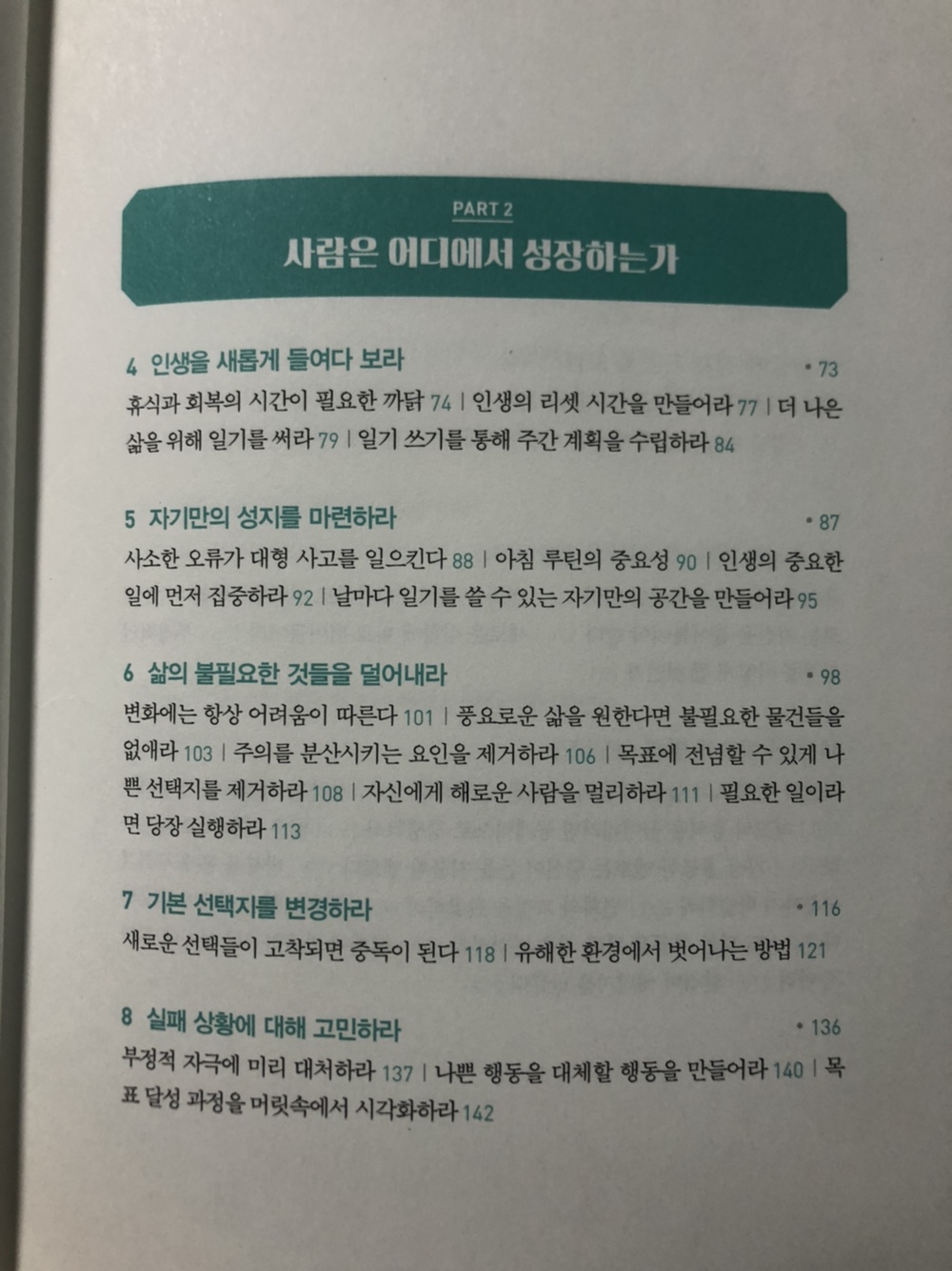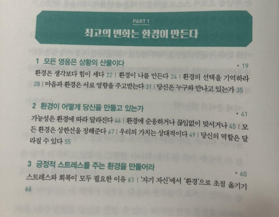 | PART 1 최고의 변화는 환경이 만든다 PART 2 사람은 어디에서 성장하는가 PART 3 최적의 환경을 설계하라 |