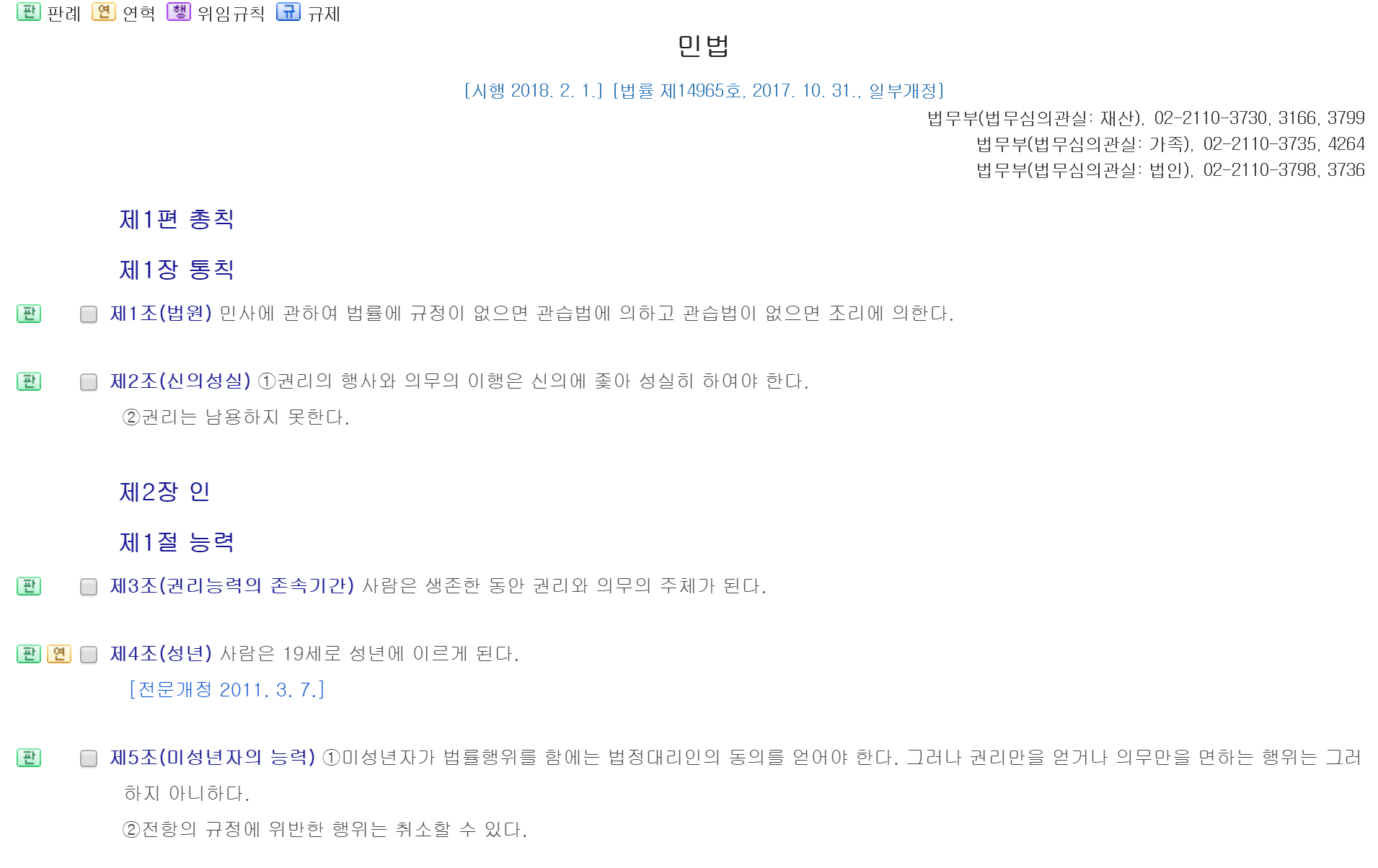 법제처에 나오는 민법전은 형식적 의의의 민법임