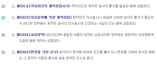 승낙 : 청약에 대응하여 계약을 성립하게 하는 의사표시