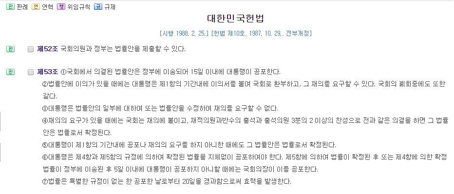 대통령에게 법률안 거부권이 있음(헌법 제53조)