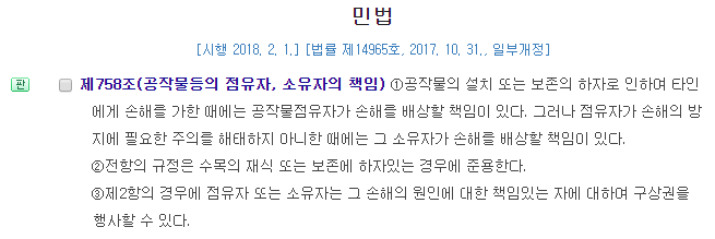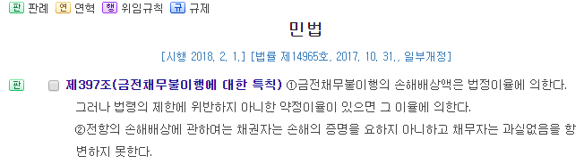 관련법률 : 금전채무불이행에 대한 채무자의 책임(제397조), 공작물소유자의 책임(제758조)