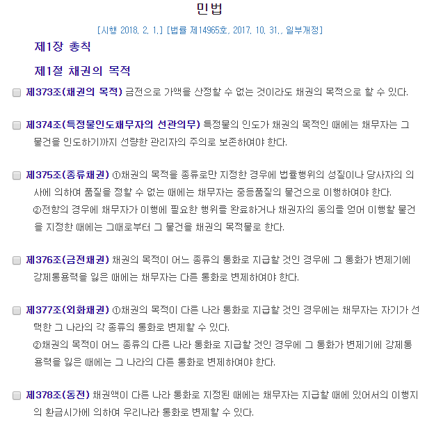 민법 제378조 채권액이 다른 나라 통화로 지정된 때에는 채무자는 지급할 때에 있어서의 이행지의 환금시가에 의하여 우리나라 통화로 변제할 수 있다.