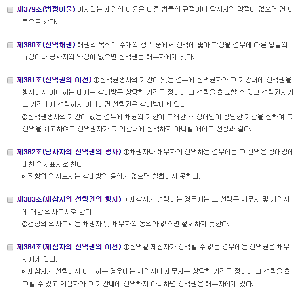 - 선택의 효력은 채권발생 당시로 소급함(386조 본문)