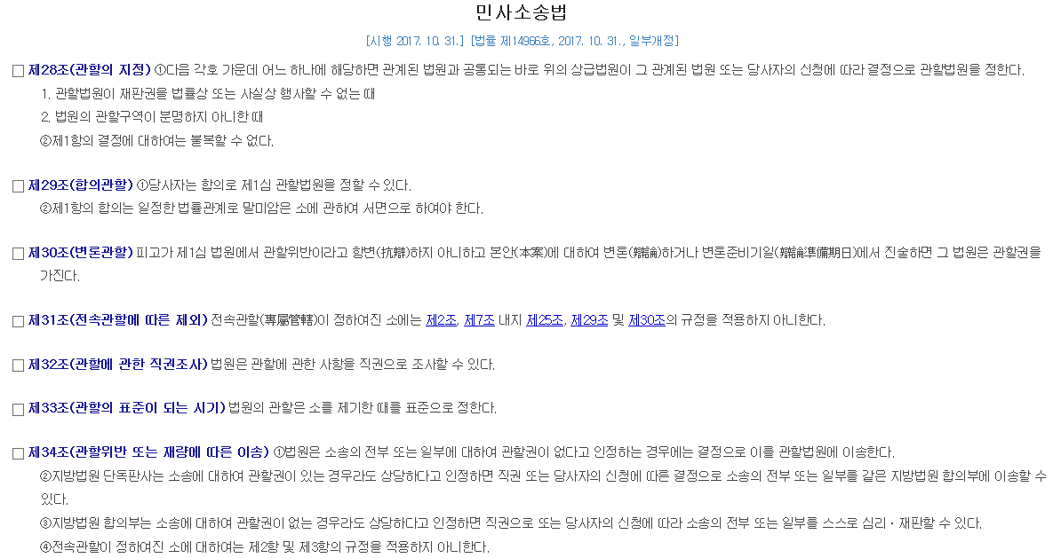 1항 제1심법원의 임의관할에 한하여 할 것