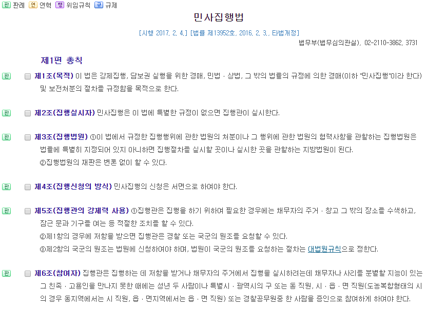 집행관 규칙 제4조 1항 - 집행관은 소속 지방법원 본원 또는 지원의 관할구역 내에서만 그 직무를 행할 수 있다.